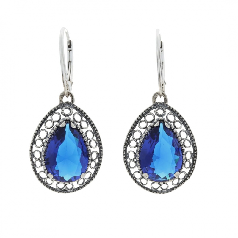 Kolczyki łezki z szafirową cyrkonią srebro oksydowane